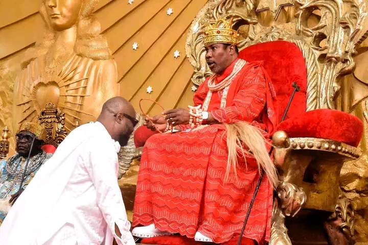 The Senator representing Delta South Senatorial District, Senator Joel-Onowakpo Thomas has been conferred with the prestigious traditional title of Ibetariwei by His Royal Majesty, Oboro-Gbaraun II, JP, Aketekpe, Agadagba, the Pere of the Ancient Gbaramatu Kingdom.